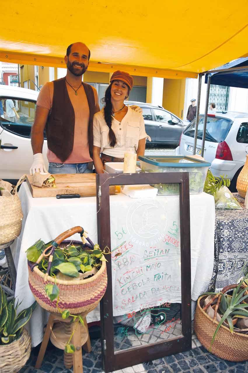 Tiago Braga e Christa Mitchell vivem na Sancheira Grande numa quinta de “agricultura natural”. “Produzimos hortícolas e viemos vender comida feita por nós”, contou a dupla que também se estreou no Bazar. Tiago foi chefe de cozinha em Londres mas agora prefere dedicar-se a produzir a matéria-prima e inclusivamente querem vir vender para a praça da Fruta. Trouxeram sandes feitas com massa mãe e com a preparação de vários dos seus legumes. A estreia no Bazar não poderia ter corrido melhor pois “gostaríamos de voltar” .