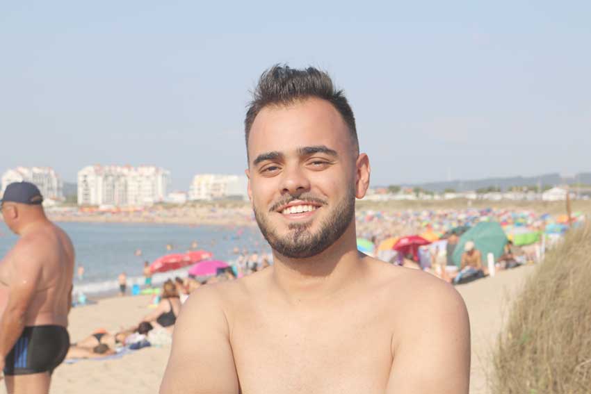 Estou de férias aqui na zona de São Martinho do Porto, onde já tinha estado há uns sete anos e o que gosto mais é que, apesar de ter bastante gente, é uma praia ainda pacata e tem uma grande beleza ao seu redor, é acolhedora e bastante tranquila. É um bom sítio para descansar e recuperar as forças para mais um ano lectivo! Também conheço outras praias aqui na região, como a Nazaré, mas esta é a minha preferida, especialmente porque a água é mais calma, não tem grandes ondas e isso permite estar com o meu irmão, que é mais novo, e estar descansado, sem qualquer tipo de problemas.