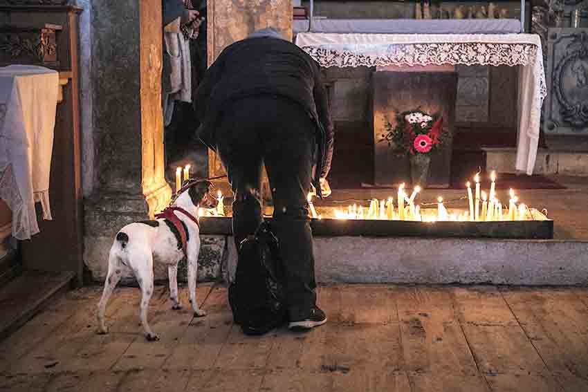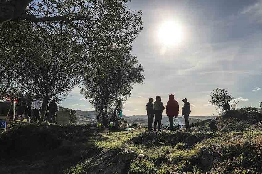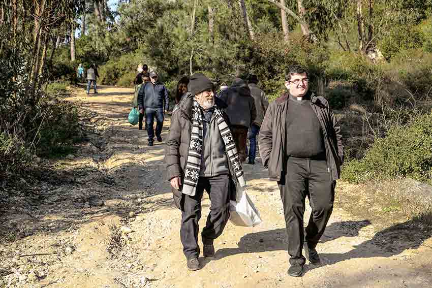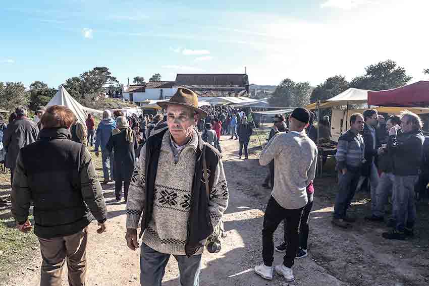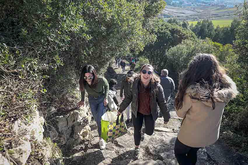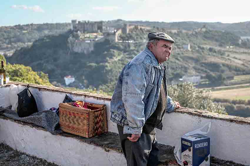 Curiosamente, ao dar com o trilho deparo-me com uma concentração de carros junto aos lindos campos de cultivo que por ali existem, hoje convertidos numa espécie de parque de estacionamento improvisado. Mais à frente, ao chegar ao início da subida da colina, um mar de gente de grande vigor, carrega sacos enormes, panelas e outros tantos artefactos. Rijos são os homens e mulheres que se aventuram nesta subida bastante acentuada de 150 degraus até ao topo do monte que fica a cerca de 80 metros do trilho inicial. Pelo caminho vou-me cruzando com gentes da terra e outros que por ali andam para marcar a sua presença nesta tradicional e antiga festa deste santo protector dos animais. Lá em cima, uma vista sublime sobre a vila e o castelo de Óbidos deslumbra qualquer curioso que por ali apareça. A pé, de tractor, ou de jipe, todos os caminhos vão dar a ermida.