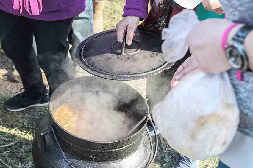 Depois da homilia, faz-se a sopa, põem-se os chouriços e as carnes a assar. São tantas as barrigas umas e outras menos famintas, vão sendo alimentadas e regadas com muito vinho.