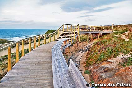 O projecto foi elaborado pela arquitecta Nadia Schilling e desenvolvido pela autarquia caldense em conjunto com a ARH – Tejo (Administração da Região Hidrográfica). Os percursos pedestres já existentes nas arribas foram ligados entre si através de passadiços de madeira e existem miradouros com algum mobiliário onde os visitantes podem contemplar a paisagem. Com estes passadiços em madeira pretende-se criar a ligação entre os vários espaços e encontrar entre os vários miradouros condições para que as pessoas possam contemplar o mar e tirar alguma sobrecarga de estacionamento sobre as arribas.