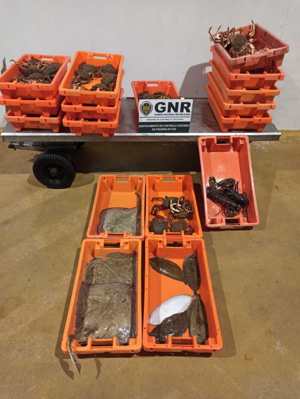 Foram apreendidos 4,6 quilos de linguado-branco, 14,6 quilos de raia-zimbreira, 69,8 quilos de santolas e 2,6 quilos de lavagante, com um valor total de 477 euros.