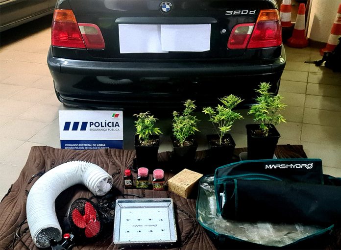 A esquadra da PSP das Caldas deteve, em flagrante delito, esta sexta-feira, um homem, de 22 anos, que conduzia uma viatura que transportava quatro pés de liamba, um tubo de extração, uma ventoinha, equipamentos para acentuar o crescimento das plantas, fertilizante e uma tenda.