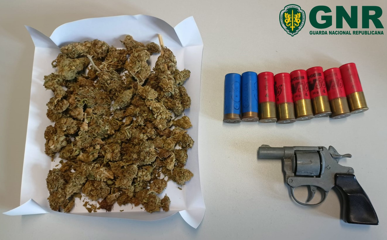 No cumprimento de três mandados de busca, foram apreendidas 20 doses de canábis, oito munições de calibre 12 e um revólver.