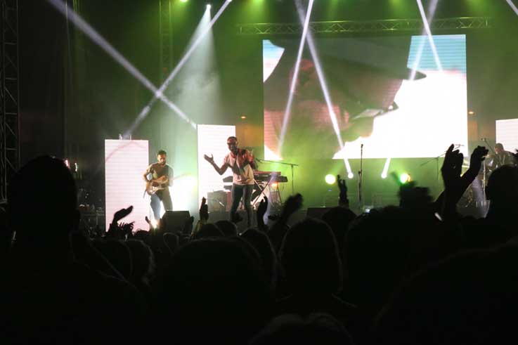 Amadeu Sousa é o director executivo da empresa Icconica, responsável pela produção do espectáculo. Enquanto se ultimavam os pormenores para a actuação de Olavo Bilac, o este responsável explicou que são precisas quatro pessoas para montar a estrutura do palco. Segue-se a equipa de seis elementos que instala os equipamentos de som e que asseguram que está tudo pronto para as bandas começarem os ensaios. A equipa de Bilac, entre músicos e técnicos, soma 16 elementos.