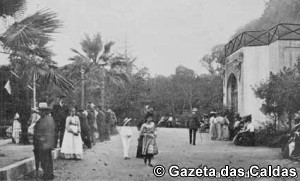 Data de 1911 esta foto em que caldenses e forasteiros, certamente num domingo ou num feriado, passeiam pelo Parque D. Carlos I e observam o lago. Este mal se avista, mas, a julgar pela quantidade de pessoas presentes, ou as damas e cavalheiros que nele navegam despertam a curiosidade dos passeantes, ou então – hipótese mais provável -, toda esta gente aperaltada aguarda vez para também dar uma voltinha no lago.