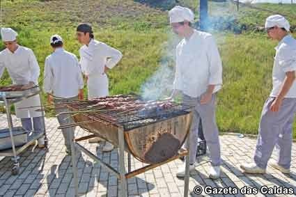 “Queríamos fazer a vitela espetada no pau de louro para dar mais sabor, e na grelha”, conta a aprendiz de chef, acrescentando que foram eles quem arranjou o fogareiro e a própria lenha, recolhida num pinhal das imediações.