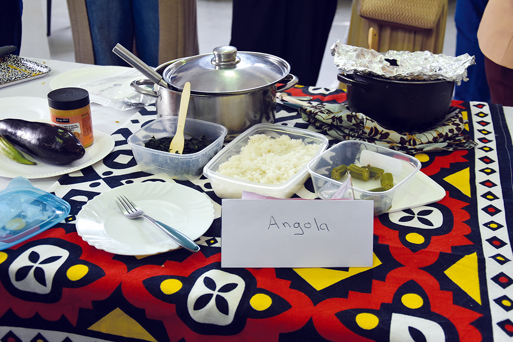 Na mesa colocada no centro da Casa dos Barcos, no Parque D. Carlos I, havia sabores muito diferentes, característicos de vários continentes. Aos 12 países representados na primeira edição, em outubro, juntaram-se agora a África do Sul e Peru. Dos golubci (prato tradicional ucraniano) à muamba de ginguba (Angola) ou à causa limeña (Peru) muitos foram os pratos e doces tradicionais que fizeram as delícias dos convivas.