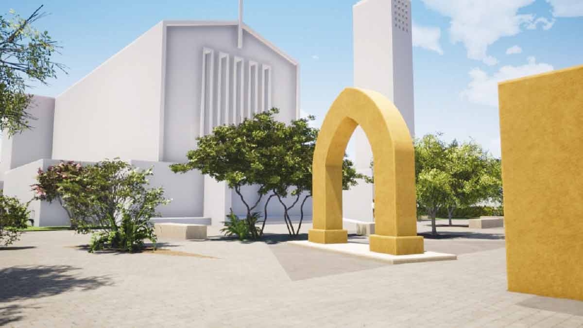 Além do restauro e tratamento dos elementos em pedra existentes, será construído um pórtico em pedra da região, com tratamento estético contemporâneo e a montagem do novo pórtico com os elementos existentes do pórtico antigo.