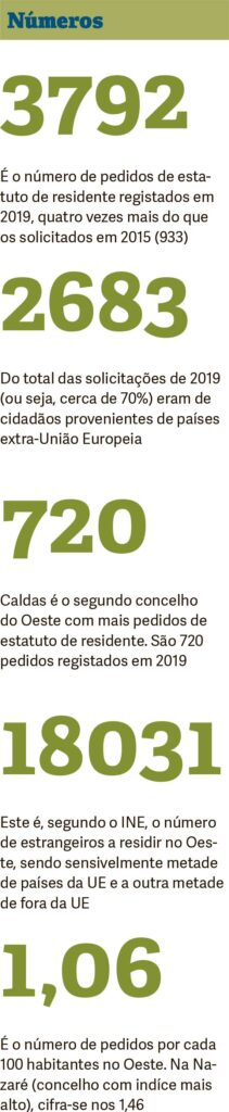 Acima das Caldas no Oeste apenas a Nazaré com 1,46 pedidos de estatuto de residente por cada 100 habitantes (quando em 2015 eram 0,30).