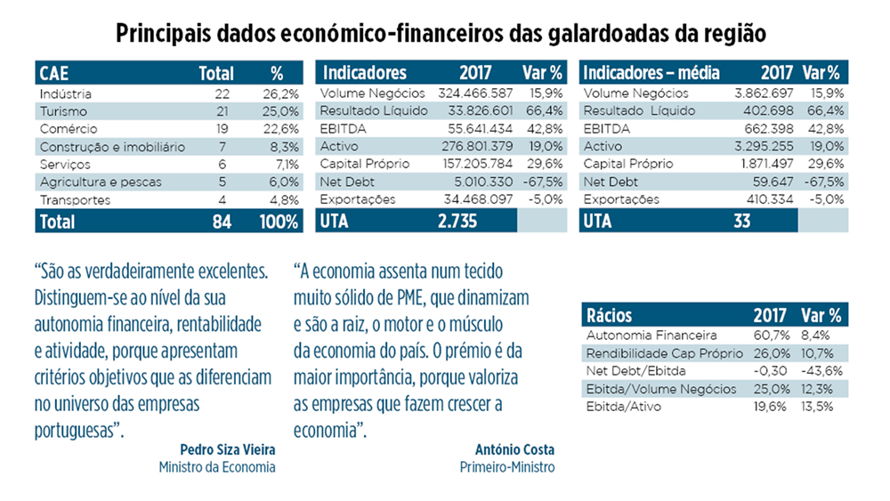 Em termos nacionais, o número de distinguidas aumentou 22% em relação a 2017 e 57% em relação a 2015, e a listagem é liderada pelo distrito de Lisboa, com 509 galardões, seguindo-se o Porto (436) e Aveiro (276). O distrito de Leiria surge na 6ª posição, com 176 empresas.