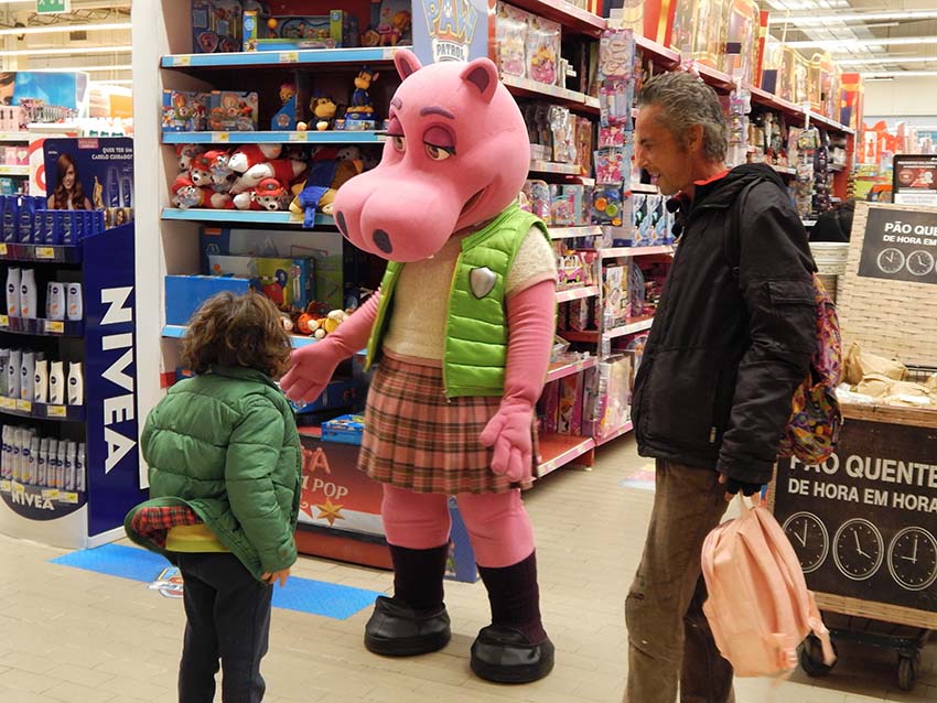 A “lenda pop do Natal” esteve no hipermercado das Caldas da Rainha, no dia 19 de Dezembro, a propósito da digressão de 13 dias por 46 localidades. Cerca de uma centena de crianças quiseram conhecer a mascote do Continente e tirar fotografias. Vestida com um estilo mais desportivo a Popota deixou os seus vestidos glamorosos em casa, mas trouxe simpatia a dobrar. Não só fez questão de pousar para as câmaras fotográficas, como de estar à conversa com os mais pequenos.