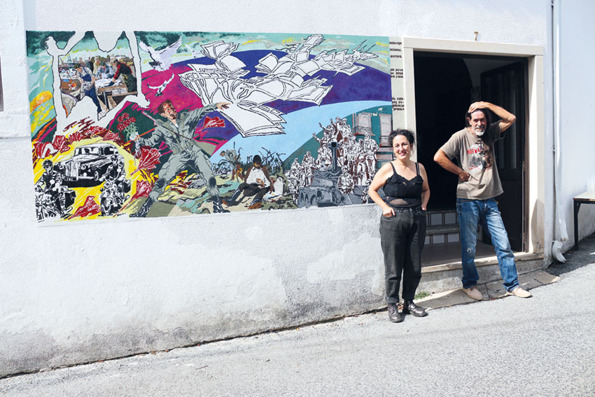 O autor do mural, José Paulo Ramos, tinha 15 anos quando andou a trabalhar na recuperação do espaço do Lagarão. “Era uma garagem, mas tinha sido anteriormente um lagar de vinho, pisavam-se as uvas e escavámos talvez um metro e meio, porque era muito baixo”, lembrou.