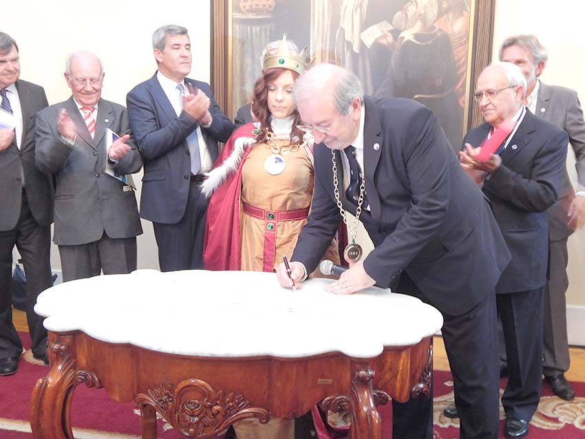 “Vossa Majestade trago uma embaixada de gente ligada à ciência médica das águas que lhe quer prestar um tributo especial. Os ecos dos milagres destas águas e a fama da vossa cidade já se espalhou pelo mundo e vinha pedir a vossa excelência que aceite ser patrona da nossa sociedade”. Foi assim que Pedro Cantista, presidente da Sociedade Portuguesa de Hidrologia Médica se dirigiu à Rainha D. Leonor numa cerimónia que contou com a figura da rainha em “carne e osso”. A Sua Majestade foi entregue um colar com a medalha da sociedade como símbolo deste reconhecimento.