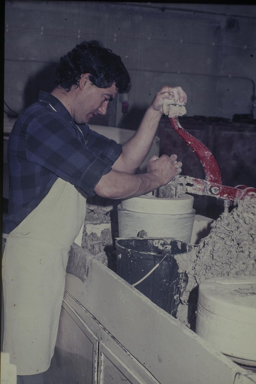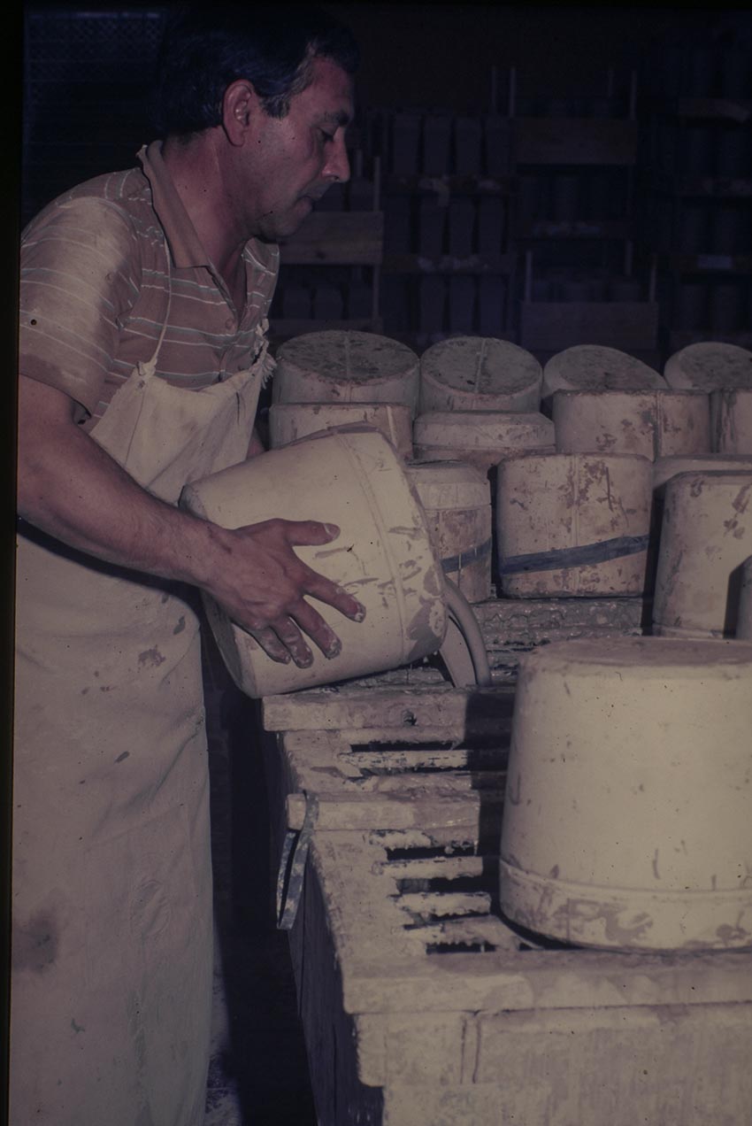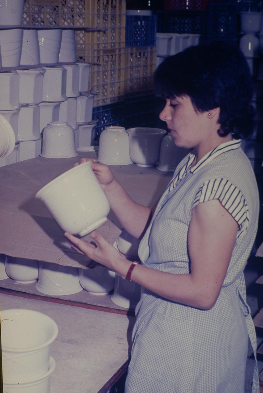 Nesta unidade trabalhava-se com uma pasta feldespática (mais resistente) que se destinava à produção de vasos para os clientes na Holanda e Inglaterra.