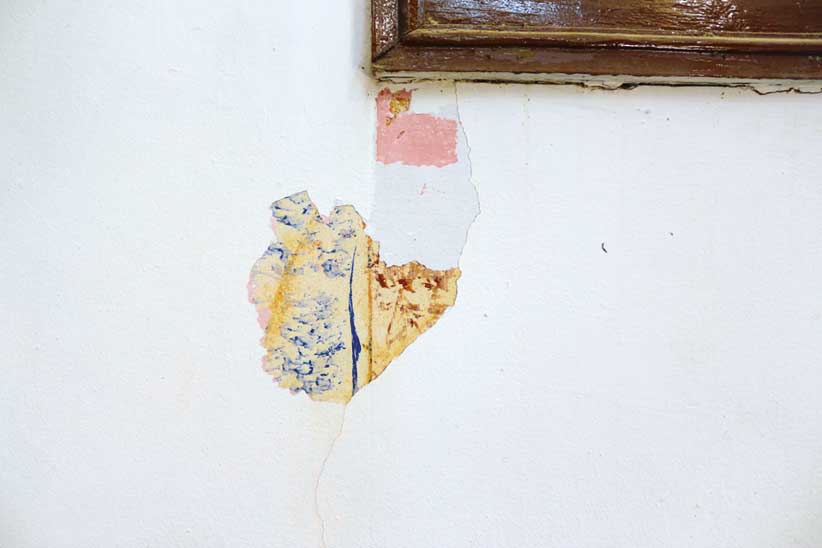 Pormenor de zona da parede que permite ver as diferentes camadas de tinta
