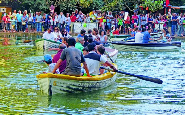 [showhide]Embora na teoria a prova pareça fácil, na prática dar uma volta ao lago revela-se um verdadeiro desafio. É preciso ser-se rápido a desamarrar o nó da corda que prende o barco ao cais e depois ter destreza para arrancar em primeiro lugar, de forma a evitar a congestionamento que, poucos segundos após a partida, se gera logo ao início da primeira curva do lago. Mais à frente, por baixo da ponte e já com a meta à vista, gera-se outro ponto de engarrafamento.