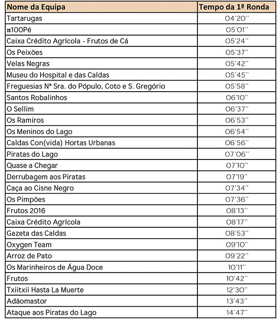 A corrida final foi disputada pelas equipas “Caixa Crédito Agrícola – Frutos de Cá”, “Tartarugas”, “Os Peixões”, “π100Pé”, “Os Ramiros” e “Museu do Hospital e das Caldas”.