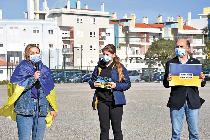 Frente a todos os colegas, professores e funcionários estavam as jovens de origem ucraniana, Tatiana Tetyanych, e russa, Anastásia Vrabie, que apelaram à ajuda de todos e mostraram a união que existe entre os dois povos. Anastasia, que é também coordenadora do grupo da escola da Amnistia Internacional falou das consequências da guerra e da violação dos direitos humanos e destacou a importância do gesto simbólico dos colegas, para que os ucranianos percebam que “não estão sozinhos”. A jovem, filha de um russo e de uma moldava, que residem em Portugal desde 2000, reconheceu que há preconceito para com o povo russo e defende que a temática do conflito seja mais debatida nas escolas. Vão também pedir a todas as turmas que escrevam uma carta em Inglês ou Ucraniano para mandar aos civis e organizar mais recolhas de roupas e medicamentos. Tatiana Tetyanych reforça a ideia de que se trata de direitos humanos e pediu para não discriminarem os colegas russos, que sofrem como eles, ucranianos.