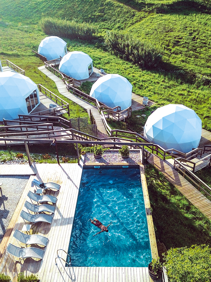 De Paredes de Vitória é possível ir passear para Norte, por exemplo, para São Pedro de Moel, ou conhecer a tradição vidreira da Marinha Grande, entre outras. No nosso caso, seguiremos para Sul, pela Estrada Atlântica, em direção à segunda paragem e uma das referências na região: o Ohai Nazaré Outdoor Resorts é um dos projetos que tem atraído atenções pelo conceito e investimento. Não é um parque de campismo daqueles que vêm à cabeça da maioria quando ouvem falar no tema. Trata-se de um outdoor resort, onde se pode pernoitar em caravanas, apartamentos, bungalows ou tendas de glamping. Um dos grandes atrativos é o parque aquático e piscinas, onde se destaca a piscina de contentores, exterior, aquecida, com “janelas” que permitem registos fotográficos interessantes. A animação é outro ponto forte, assim como o ginásio, as instalações desportivas, com campos de padel e voleibol de praia, complementados com outras ofertas, como o aluguer de bicicletas. Os preços não são propriamente baratos, mas a experiência compensa, especialmente quando em família com crianças.