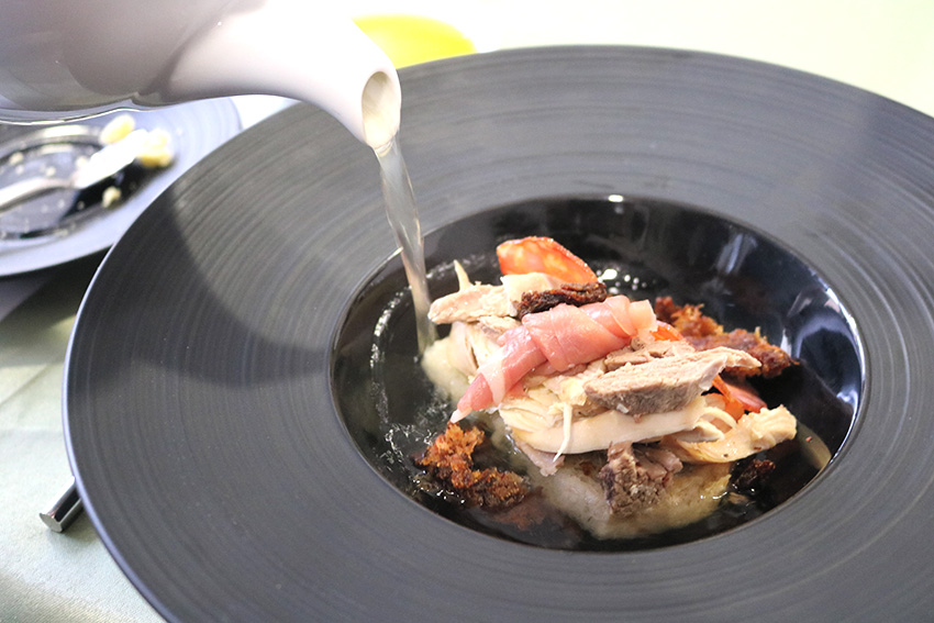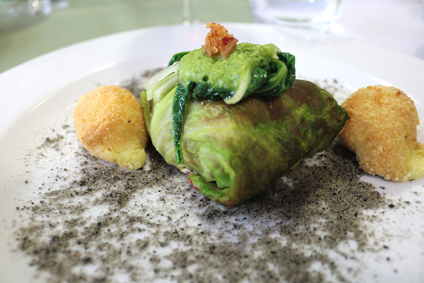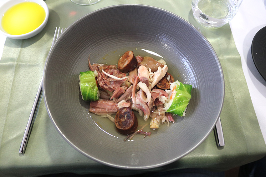 Ainda houve tempo para bacalhau envolvido em presunto e uma folha de couve, com creme de grelos e um pó de azeitonas e tinta de choco e para um prato de cozido à minhota, também utilizando as carnes de porco e vaca.