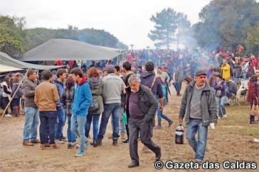 O grupo foi na véspera ao monte colocar cerca de uma tonelada de lenha que depois, no dia de festa garante fogo para as duas grelhas grandes que “trabalham” durante todo o dia, tanto para assar os seus chouriços, como os dos amigos, ou mesmo desconhecidos, que ali se encontram.
