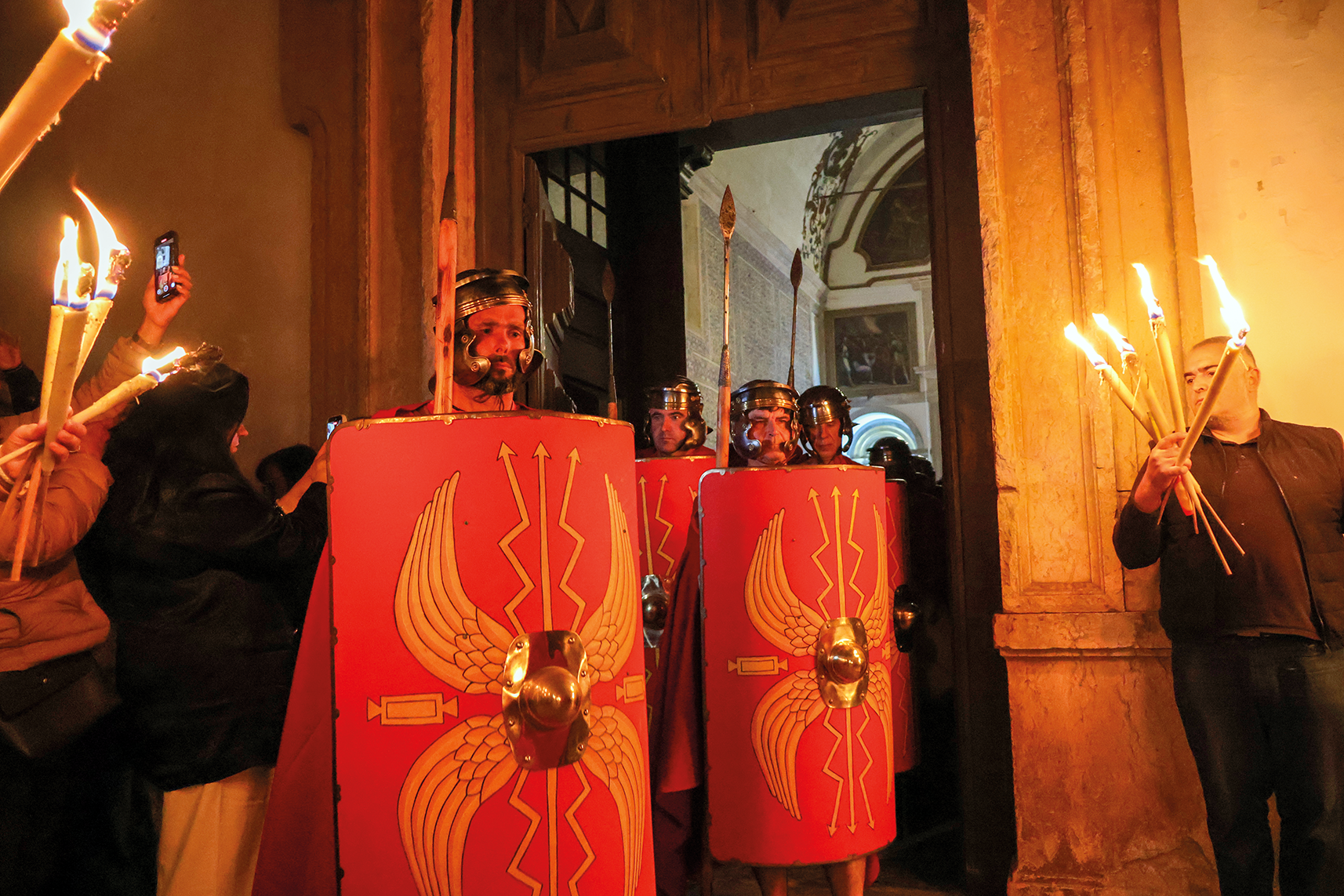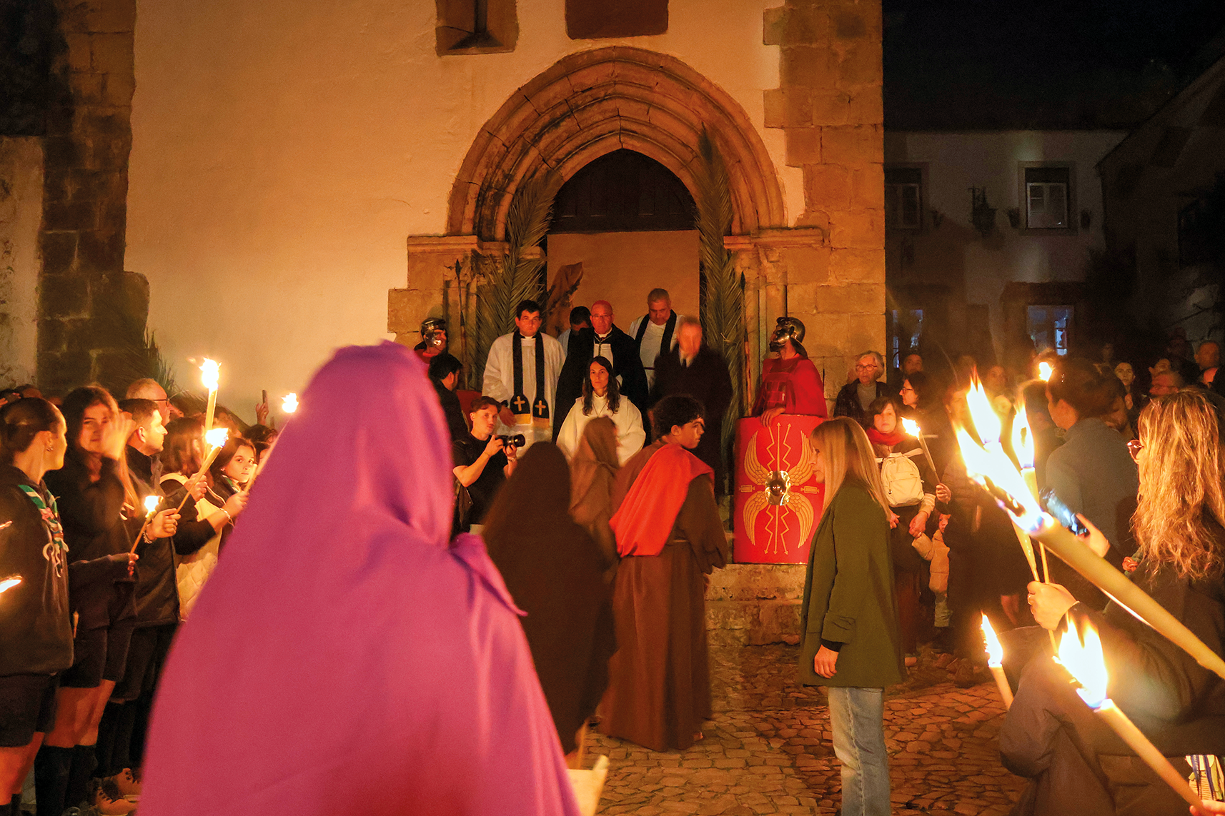 Doze soldados romanos, fardados a rigor, encabeçam a procissão do Enterro do Senhor na noite de Sexta-feira Santa, pelas ruas de Óbidos, com centenas de pessoas a participar e milhares a assistir. Ouvem-se os tambores que, explica o provedor da Santa Casa da Misericórdia de Óbidos, Carlos Orlando Rodrigues, “simbolizam o momento em que, segundo as escrituras, o véu do templo foi rasgado após a morte de Cristo”. Nas comemorações da Semana Santa em Óbidos “tentamos estar sempre de mãos dadas com a história, com a igreja e a religião, para enriquecermos as nossas cerimónias”, explica um dos responsáveis pela organização, a cargo de uma comissão composta pela Igreja, a Misericórdia e a Câmara Municipal.