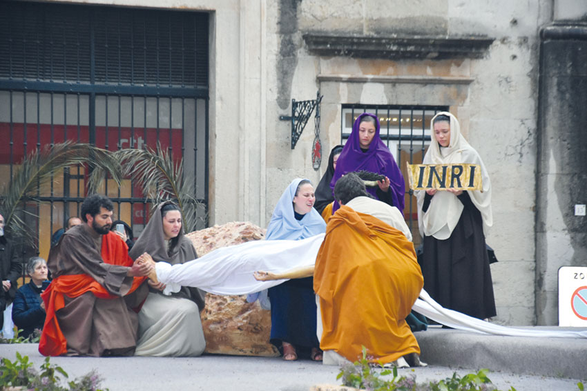 Ao final da tarde de sexta-feira, 29 de março, chovia copiosamente na vila de Óbidos. Ainda assim, a organização da Semana Santa decidiu avançar com a representação do Auto do Descimento da Cruz com dezenas de pessoas a tentar abrigar-se debaixo de alpendres, telheiros e chapéus de chuva para assistir à “teatralização religiosa” representando a retirada do Senhor da Cruz. A última vez que esta celebração aconteceu em Óbidos foi em 2014. Dela fazem parte 30 personagens, entre os quais soldados romanos, amigos de Jesus, as Marias, São João e Nossa Senhora.