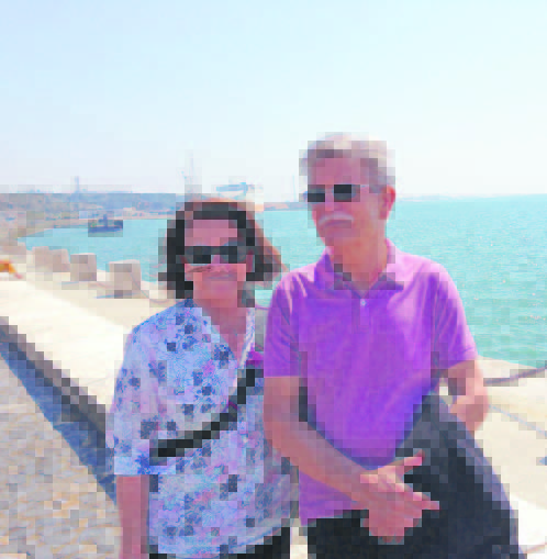 No jardim em frente ao rio passa um enorme cargueiro. Mário e Maria Jordão assistem à manobra do colosso, que atraca umas centenas de metros mais à frente. Mal saíram da estação, foram passear e fazer tempo para o almoço. Ele tem 71 anos e ela 67 e foram funcionários públicos até se reformarem.