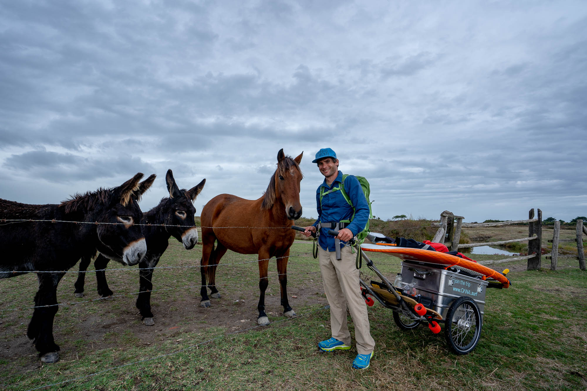 Nos primeiros quilómetros o carrinho foi puxado pelos seus alunos na Suíça, que foram dar força ao professor. Thomas seguiu em direcção ao Norte, entrando na Alemanha e virando para a França, andando e puxando o carrinho pelas margens do rio Loire até à costa de Saint Nazaire. Aí chegado, tinha andado mil quilómetros a puxar o carro de mão, sem surfar uma única onda.