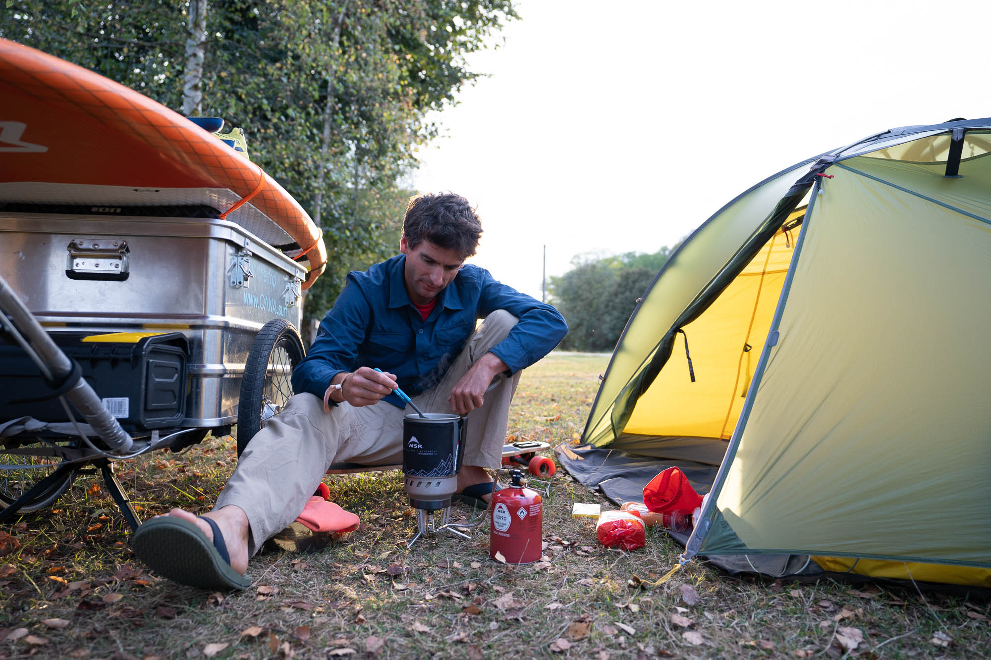 Dormia numa tenda, em campismo selvagem, e uma vez por semana num hostel ou parque de campismo para lavar as roupas e dormir mais confortável.