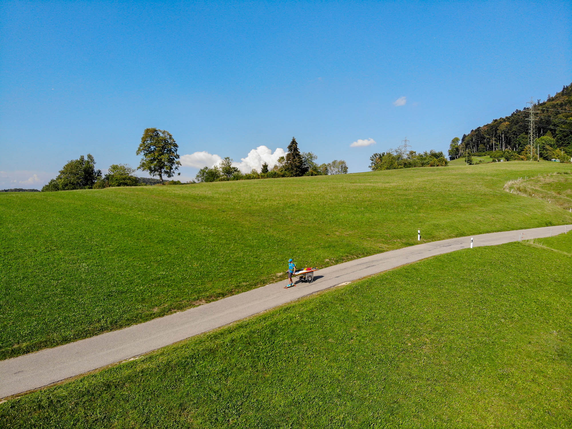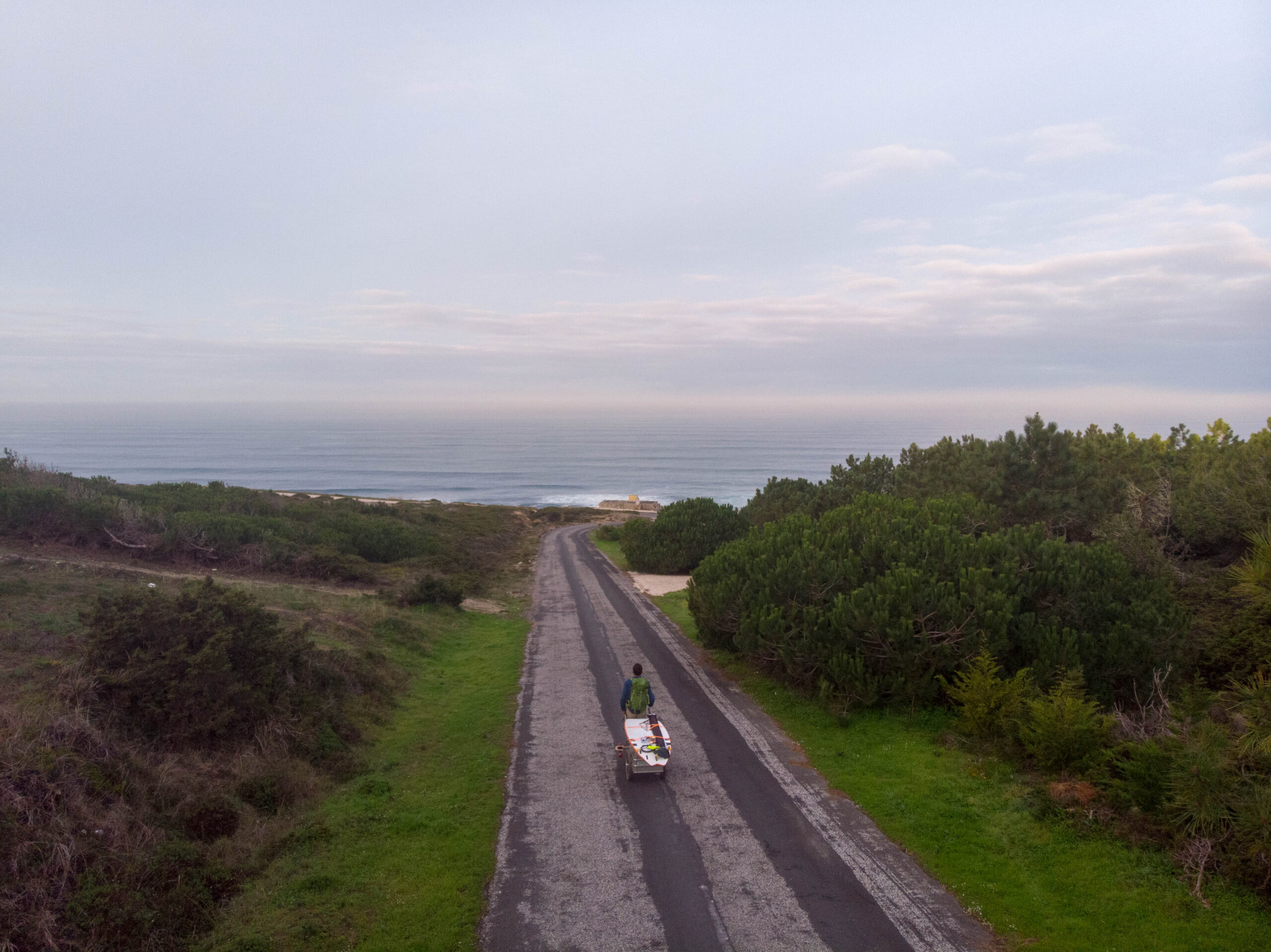 Thomas Oschwald é um professor de ensino primário na Suíça, mas é também um aventureiro que gosta de viajar a pé ou de autocaravana. Desta vez fez 4000 quilómetros a pé, a carregar um carrinho de mão onde trazia, entre outros pertences, uma prancha de surf. Saiu de Lucerna, na Suíça em direcção ao Oeste de Portugal e três meses depois cá estava ele a surfar as ondas das praias oestinas.