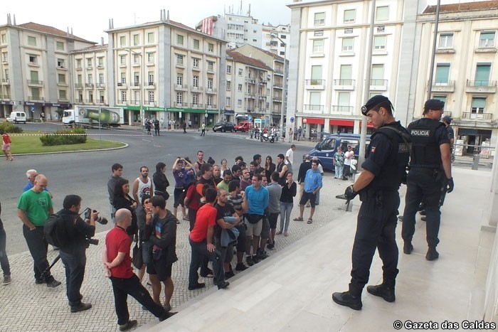 O aparato policial foi enorme e nada discreto nas Caldas da Rainha. Desde a véspera que a polícia impedira o estacionamento de veículos na Praça 25 de Abril na rua António Sérgio. “Parece o dia sem carros”, comentava um transeunte, surpreendido por ver tão “limpa” uma zona da cidade habitualmente congestionada e com carros mal estacionados.