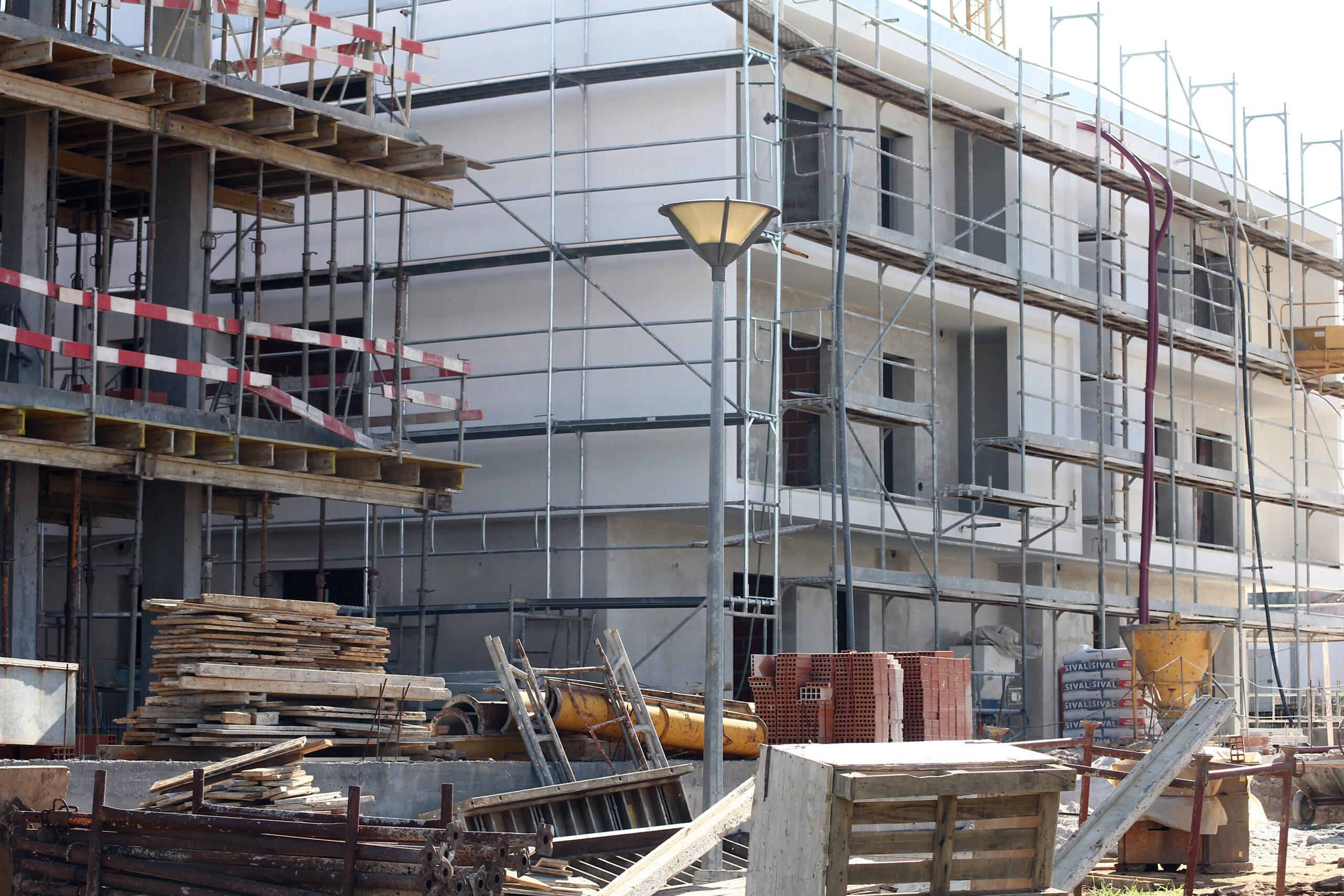 O mesmo acontece num bloco de edifícios junto à escola D. João II, onde no mesmo prédio existem apartamentos habitados e outros inacabados.