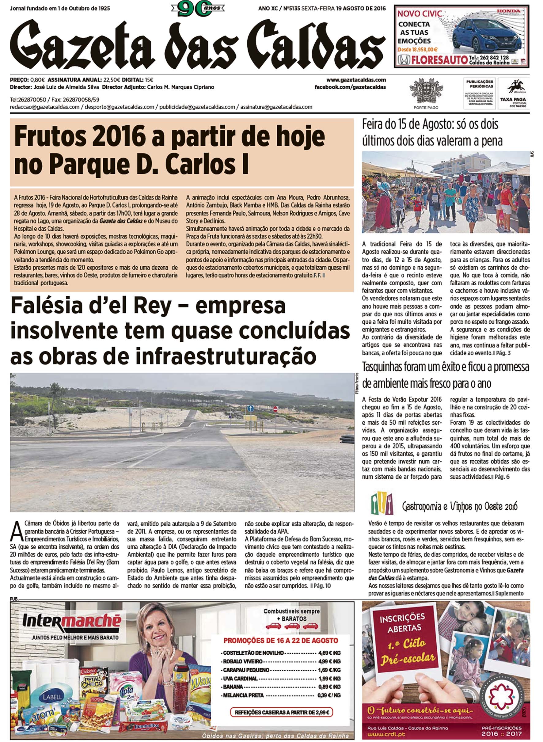 Estamos em pleno Verão e ao folhear o jornal percebemos que um pouco por todo o lado existe entretenimento para quem está de férias. Enquanto a feira do 15 de Agosto continua a ter poucos clientes, as tasquinhas da Festa de Verão chegam ao fim nas Caldas com promessas de melhorias ao nível da climatização e de construção de 20 cozinhas fixas, já para o evento de 2017. Na Foz do Arelho realiza-se um mercado na praia e há animação pais e filhos. Aljubarrota recua alguns séculos e vive os tempos da célebre batalha na qual os portugueses, em clara desvantagem numérica, derrotaram os castelhanos.