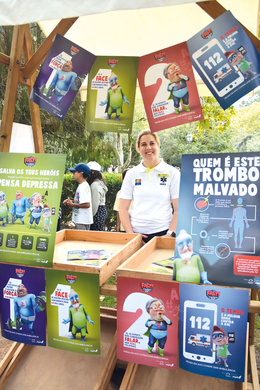 Milhares de crianças e jovens estiveram no Parque D. Carlos I, no passado dia 22 de setembro. a visitar a Festa da Saúde, que no primeiro dia foi dedicada aos mais novos. O evento, que nesta segunda edição, passou para três dias, tornando-se tranversal a todas as idades e contou com atividades tão diversas como massagens, aulas de dança, showcooking, jogos tradicionais, animação de rua, palestras, aulas abertas, mas também a apresentação de projetos na área da prevenção da doença. Um deles, que captou particularmente a atenção dos mais novos, no primeiro dia de feira, foi o Fast Heroes, que pretende alertar para os sintomas do Acidente Vascular Cerebral (AVC). Direcionado para crianças com idades entre os 5 e os 10 anos, o projeto consiste na entrega de manuais, gratuitos, e material educativo, que é entregue aos professores para trabalharem com os seus alunos a sensibilização para a importância de aprender a ligar o 112 quando veem possíveis sinais de risco. “Gostas muito do teu avô, então vamos ensinar-te alguns aspetos com os quais deves estar muito familiarizado para que, se acontecer alguma coisa, sejas um herói super rápido para ligar o 112 e explicar o que está a acontecer”, exemplifica Sónia Figueira, enfermeira do INEM.