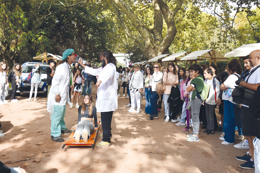 Milhares de crianças e jovens estiveram no Parque D. Carlos I, no passado dia 22 de setembro. a visitar a Festa da Saúde, que no primeiro dia foi dedicada aos mais novos. O evento, que nesta segunda edição, passou para três dias, tornando-se tranversal a todas as idades e contou com atividades tão diversas como massagens, aulas de dança, showcooking, jogos tradicionais, animação de rua, palestras, aulas abertas, mas também a apresentação de projetos na área da prevenção da doença. Um deles, que captou particularmente a atenção dos mais novos, no primeiro dia de feira, foi o Fast Heroes, que pretende alertar para os sintomas do Acidente Vascular Cerebral (AVC). Direcionado para crianças com idades entre os 5 e os 10 anos, o projeto consiste na entrega de manuais, gratuitos, e material educativo, que é entregue aos professores para trabalharem com os seus alunos a sensibilização para a importância de aprender a ligar o 112 quando veem possíveis sinais de risco. “Gostas muito do teu avô, então vamos ensinar-te alguns aspetos com os quais deves estar muito familiarizado para que, se acontecer alguma coisa, sejas um herói super rápido para ligar o 112 e explicar o que está a acontecer”, exemplifica Sónia Figueira, enfermeira do INEM.