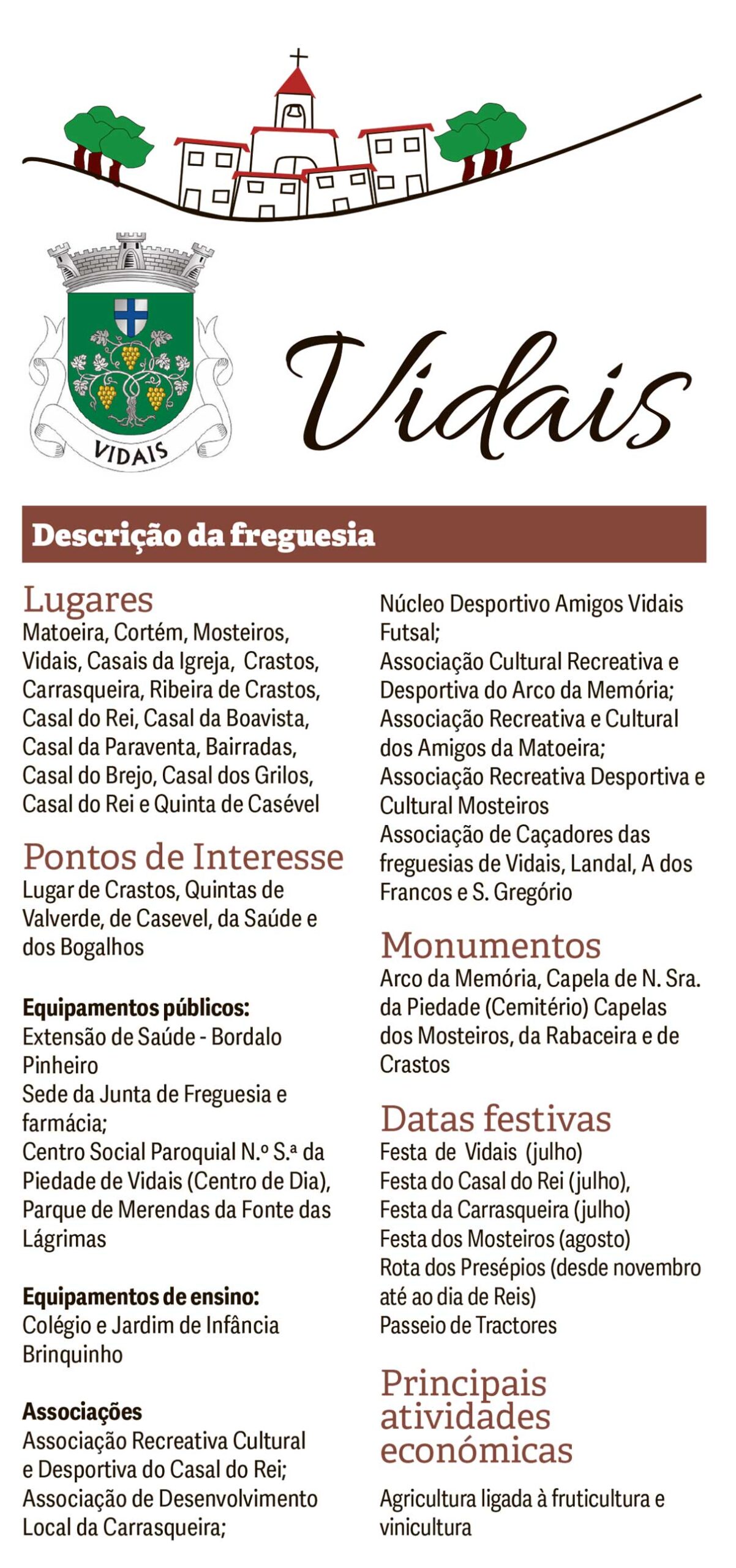 A freguesia de Vidais vive atualmente da fruticultura e da produção de vinho e tem-se destacado na produção de vinho biológico.