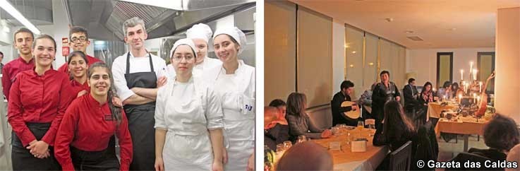 As turmas em acção neste jantar foram as do primeiro semestre de Gestão e Produção de Pastelaria e os finalistas do 3º ano do curso de Técnicas de Serviço de Restauração e Bebidas, os orientadores foram os chefs Luís Tarenta e Frederico Ferreira, da parte da cozinha e Jorge Guilherme e Marisa Rosa da parte do serviço de restauração e bebidas.