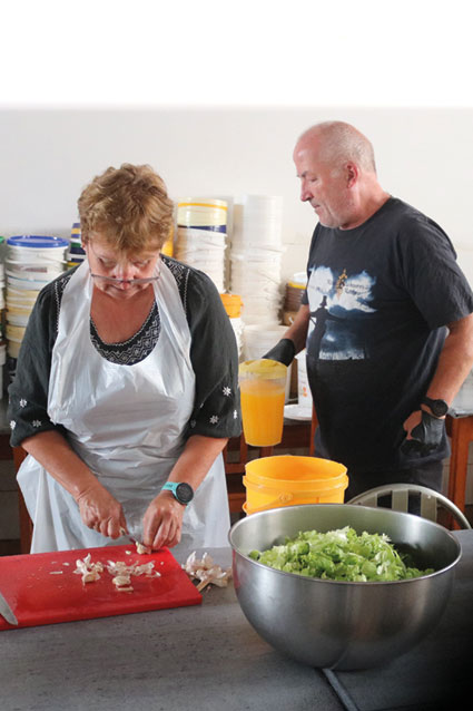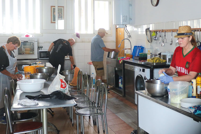 A maior parte dos voluntários são estrangeiros, reformados, que residem na região. Tendo em conta a comunidade estrangeira que reside na região e que gosta de ajudar, desafiaram-nos a auxiliar neste projeto. Os voluntários portugueses são “guardados” para servir as refeições, pela facilidade na comunicação. Cada voluntário dá cerca de três horas do seu tempo para esta causa. “Somos muitos e saímos daqui cansados, ele fazer isto sozinho é fantástico”, realça. A primeira refeição deste projeto foi assegurada pelos próprios voluntários e custou cerca de 170 euros, mas o objetivo é que todos possam contribuir para esta causa. Além de ajudar na confecção e limpeza, os interessados podem consultar a receita daquele dia na Internet, com as quantidades necessárias e doar esses alimentos, ou fazer um donativo através do IBAN PT50004551304026110472418, ou até mesmo levar uma sobremesa ou fruta até lá. “Vamos procurar apoio nas empresas locais”, nota.