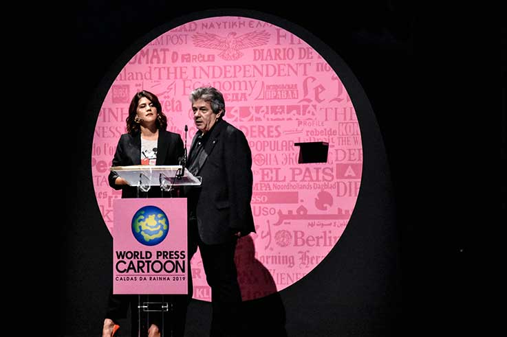 Pelo palco passaram personalidades marcantes do cartoon internacional, da imprensa portuguesa e autarcas locais. O cartoonista e director do salão, António Antunes, salientou que publicar um cartoon é “lutar pela liberdade de expressão, o que envolve riscos”. O responsável sublinhou o facto de se festejar a 14ª edição do WPC um dia depois de se comemorar o Dia Mundial da Liberdade de Expressão. “Não tenho grandes ilusões relativamente ao peso relativo dos cartoons no meio de toda esta parafernália de tecnologias e meios”, mas esta forma de expressão continua a ser “um pequeno grão de areia que, às vezes, pode fazer alguma diferença”, disse no palco do CCC.