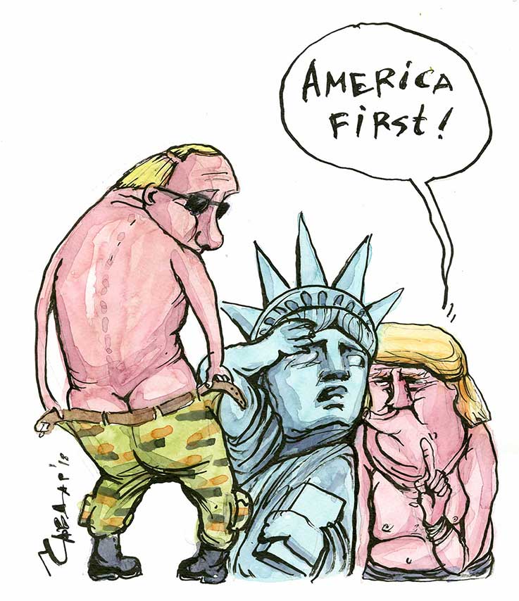Os cartoons agora premiados foram seleccionados por um júri internacional, que reuniu nas Caldas em Fevereiro. Uma escolha que nem sempre é fácil. Pelo meio há “discussões e campanhas eleitorais por um desenho ou outro…”, contou António, destacando que o facto de escolher amigos para a selecção final facilita a tarefa. Os membros do júri analisaram propostas relacionadas com “as fake news de Trump, as idiotices do Bolsonaro, a tragicomédia do Brexit, as matrioskas de Putin, o olhar misterioso e calculista de Xi e o cortejo costumeiro de fomes, guerras, refugiados e o evidente aquecimento global”.
