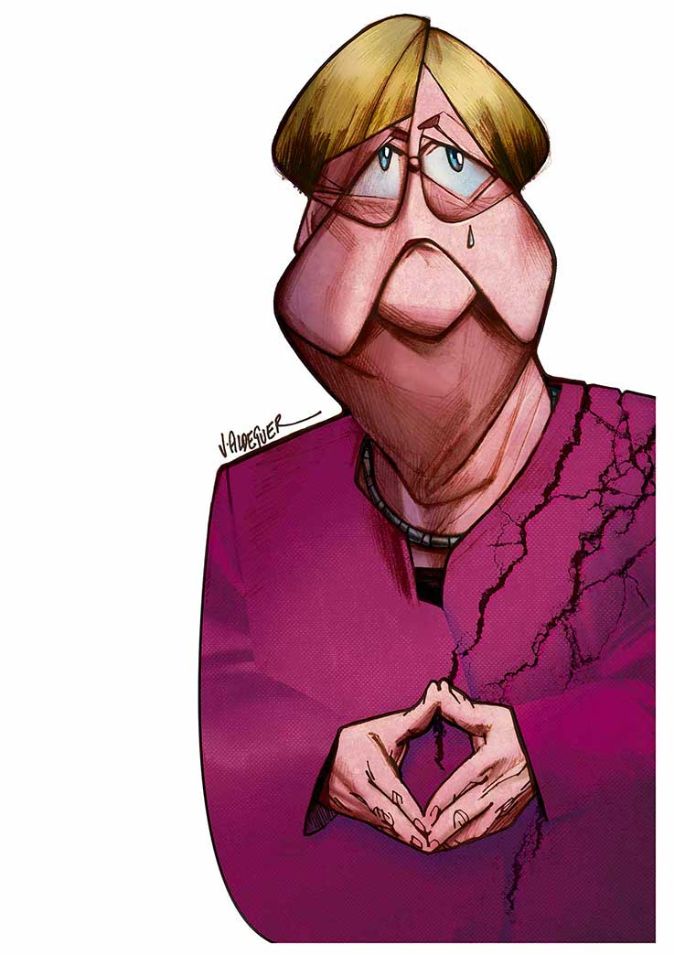 Entre os nove premiados desta edição, Javier Carbajo e Sara Rojo arrecadaram o maior prémio monetário, no valor de 10 mil euros, juntamente com presentes oferecidos pelos patrocinadores do evento. Ainda na categoria de Caricatura, o júri atribuiu o segundo prémio à obra Angela Merkel, de outro espanhol, Joaquín Aldeguer, publicado na revista El Jueves, em Novembro de 2018. O autor, que fez a primeira caricatura aos sete anos, disse que o desenho vencedor retrata a despedida da chanceler alemã que, “embora esteja um pouco triste, continua a manter a sua postura habitual”, explicou.