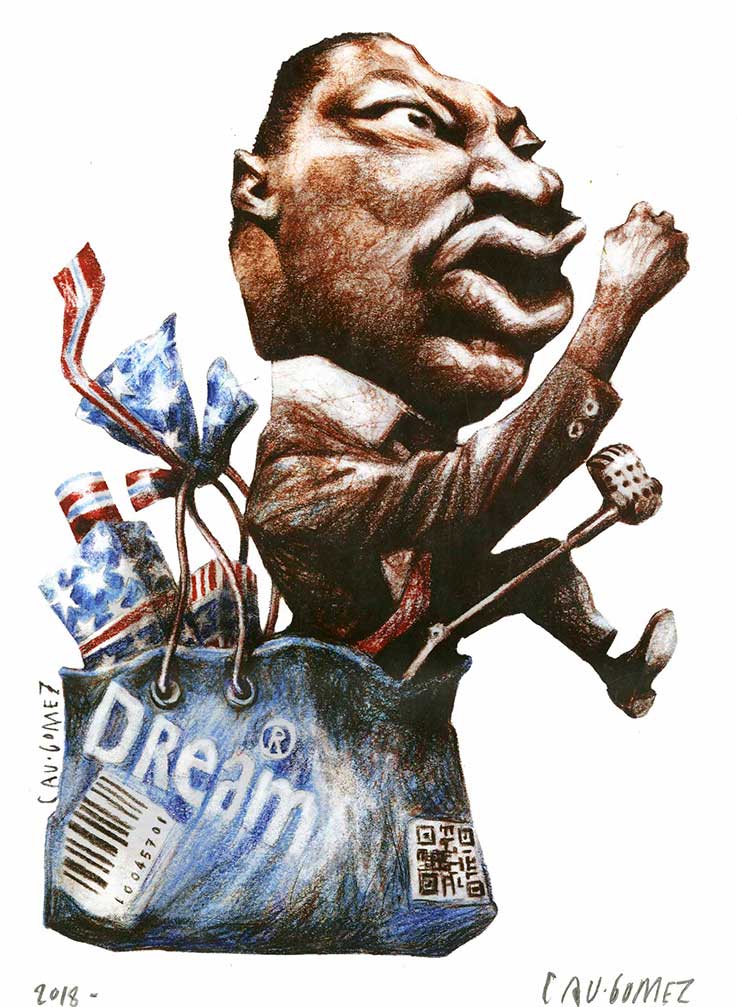 O terceiro prémio foi para Martin Luther King, do autor brasileiro Cau Gomez, publicado no Le Monde Diplomatique, em Abril de 2018. O trabalho homenageia o activista norte-americano e recorda que actualmente “vivemos num mundo inseguro e intolerante”, disse o autor.