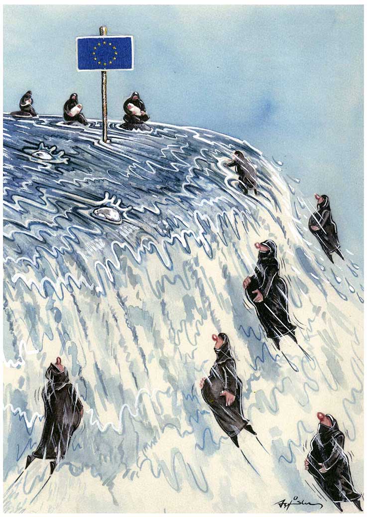 “Este desenho deu muitas voltas e foi bastante complicado”, reconheceu Sara Rojo. Para o completar, tiveram de recorrer a trabalhos anteriores, como uma ilustração com o Iraque ao fundo. “Somos muito abertos relativamente a misturar técnicas e formas”, disse a autora.