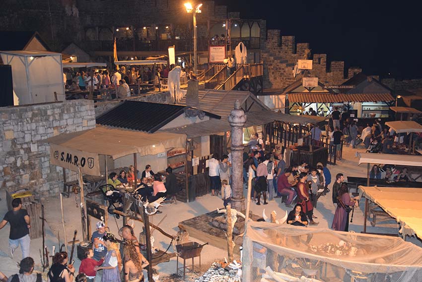 O mercado medieval funciona entre quinta-feira e domingo e é dinamizado por centenas de figurantes e de voluntários do concelho que garantem o funcionamento das tavernas bem como de outras atracções. Artesãos, mercadores, cartomantes também marcam presença numa edição que tem como novidade um acampamento árabe, onde é retratado o quotidiano familiar almorávide e berbere medieval.