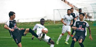 Bola de Pedro Faustino ao poste podia ter decidido a favor do Caldas, mas a partida foi muito disputada e não abundaram muito mais...