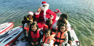 Pai Natal avistado na Lagoa de Óbidos numa prancha de SUP