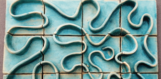 Os painéis da ceramista decoram agora as paredes daquele espaço de gastronomia e convívio