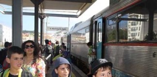 Alunos da Batalha vão de comboio à praia de S. Martinho...